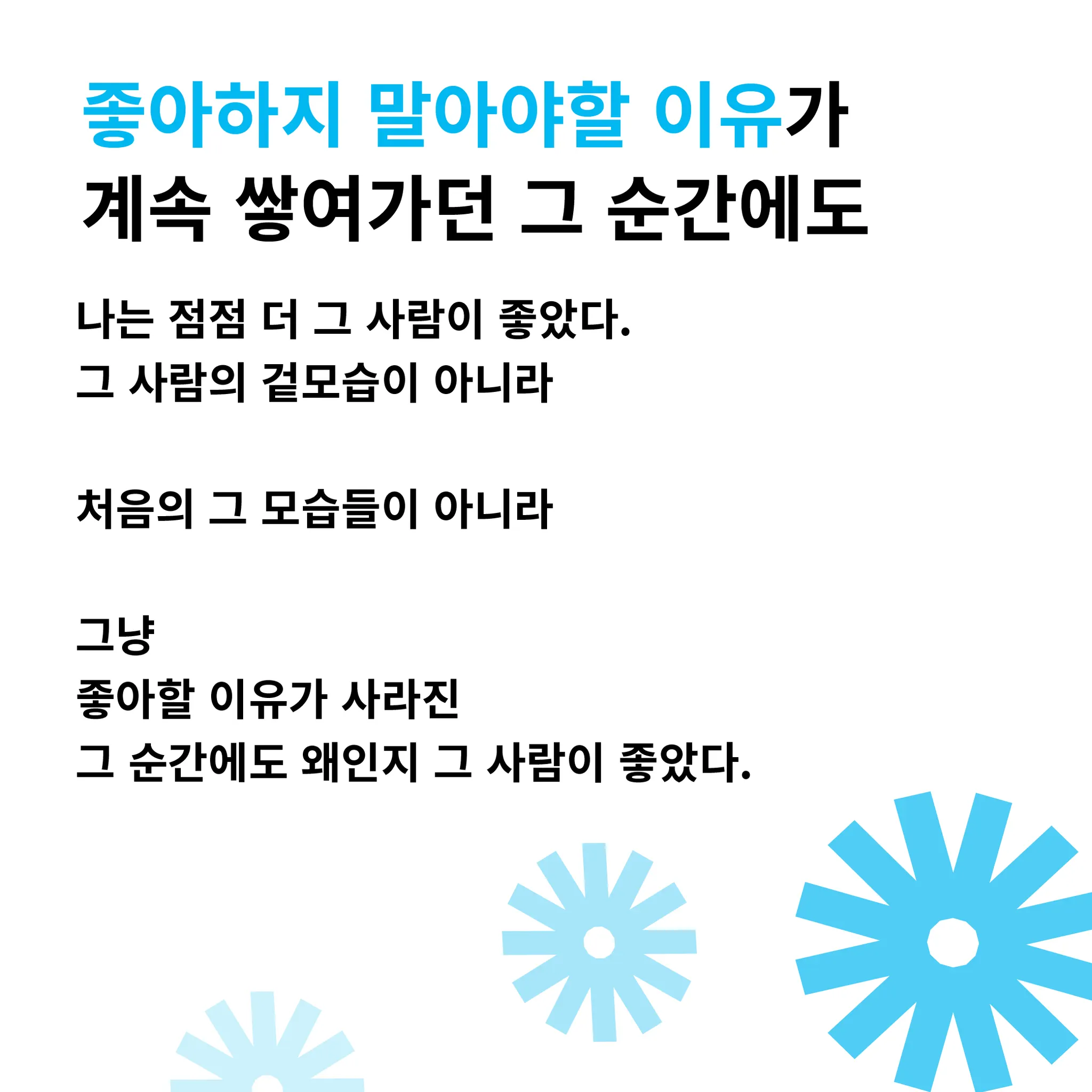 좋아할 이유가 사라진 그 순간에도 왜인지 그 사람이 좋았다.